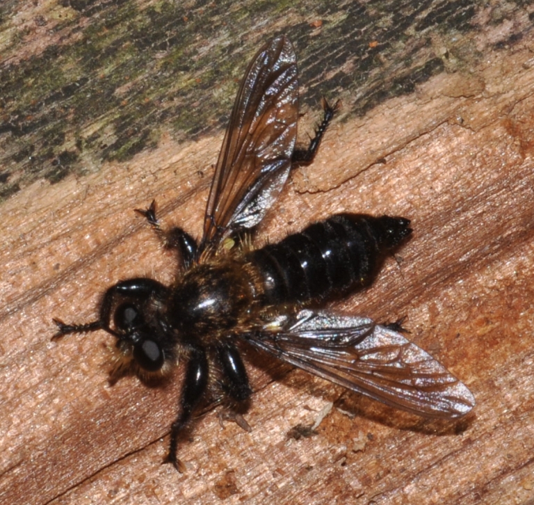 Laphria divisor (Banks), Worn male on rotting log in deep woods. Clearfield Co., PA, July 04, 2011. Identified from photo by S. W. Bullington.