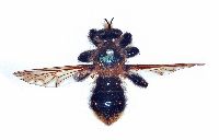 19 mm. The idenity of this species is somewhat problematic. Williston described it in 1884 from a single male, taken in the then "Washington Territory." Although the description is straightfoward enough, later assignments to the species may or may not be valid. The distinguishing feature is supposedly the complete lack of black hairs, and their replacement by yellow ones. Such a color scheme, however, could simply represent a particularly alpine form of L. fernaldi. Alpine races of otherwise lowland species are often colored lighter. The specimen at left was identified by A. E. Pritchard.