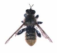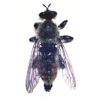 19 mm. This distinctive species was described from the unlikely location of Winnipeg, in the province of Manitoba, Canada. It appears to be fairly rare, at least in collections. It is likely this scarcity is more an artifact of collecting (or the lack of it) in such an out-of-the way location, than it is of a low, scattered population. Both males and females can immediately be recognized by having a predominately black thorax and abdominal tergites 2-6 densely covered with light yellow hairs.