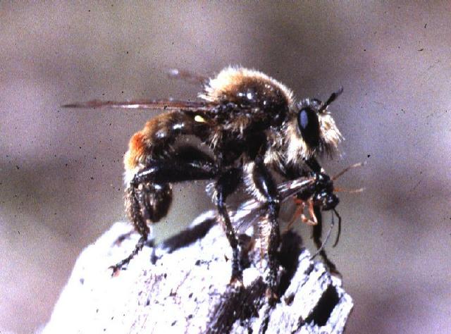 ![]() As their names might suggest, many of the flies that were once assigned to Bombomima look like bumble bees, as shown in the photo directly above; although some, as the Laphria flavicollis pictured in the photo directly below, are both smaller and more slender, and resemble Bombus less than perhaps they do some other, smaller bees. The range of the flies once assigned to Bombomima is practically co-terminous with forest. Because of their bee-like appearance, some of the species were originally erroneously thought to belong to the genus Dasyllis. Dasyllis is now known to be exclusively Neotropical, and has been assigned to another tribe altogether, the Andrenosomini. ![]()